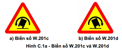 Biển W.201c và W.201d là biển báo chỗ ngoặt nguy hiểm có nguy cơ lật xe, nhằm mục đích báo trước sắp đến chỗ ngoặt nguy hiểm có khả năng gây lật các xe có trọng tâm cao và tải trọng lớn như xe tải, xe buýt giường nằm, xe chở chất lỏng.